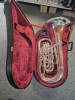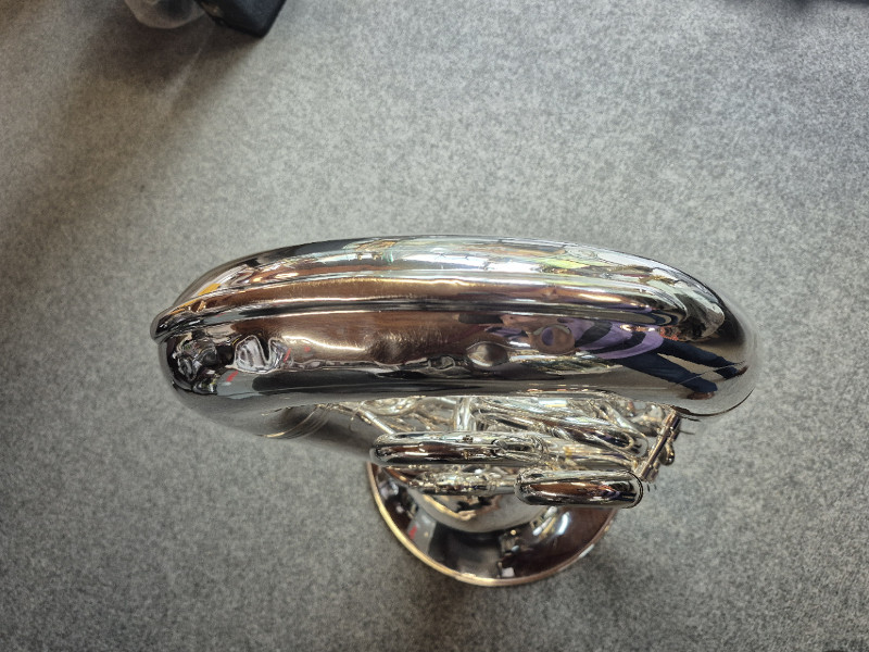 Instrument révisé, en bon état. Bosses sur la culasse sans influence sur le jeux. Très bon aspect de l'argenture. Avec étui Yamaha, embouchure, lyre